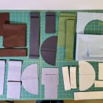 Fabric: Kona Solids in Dill, Snow, Iron, Coffee, Blue and Gotham Grey